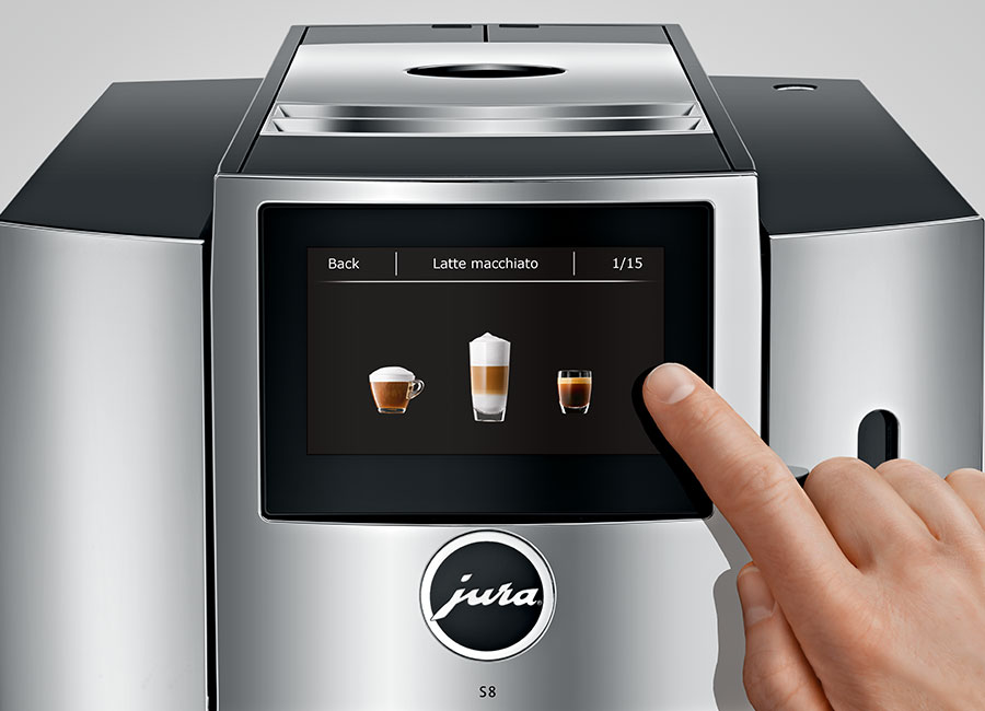 The JURA S8 chrome offers 15 different specialities – from an aromatic espresso to a trendy cappuccino. Those who like their coffee more intense can P.E.P. up their cappuccino, flat white or latte macchiato using the Extra Shot function.